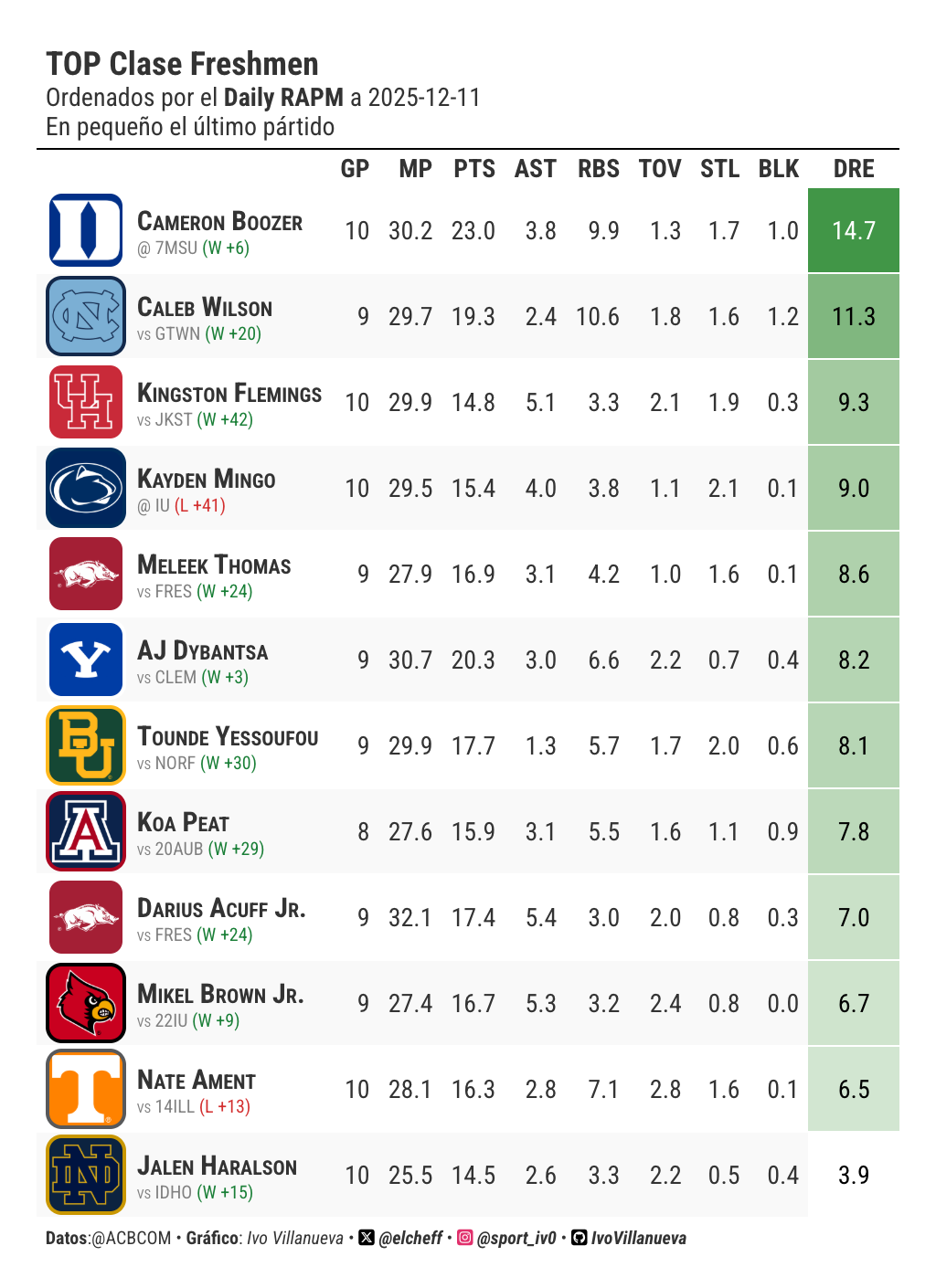 Boozer se ha convertido en una figura central dominante en Duke, demostrando un rendimiento de élite contra rivales Top 25. Sus actuaciones, como 18 puntos y 15 rebotes ante Michigan State, y una destacada actuación frente a Florida que le valió el Jugador de la Semana por la AP, lo confirman como uno de los mejores freshmen del país. Yo creo que es el competidor más fuerte para el Jugador Nacional del Año. En X, medio de broma, medio no, lo comparé con Garbajosa; me recuerda a ese tipo de jugador que juega de jugador de baloncesto.