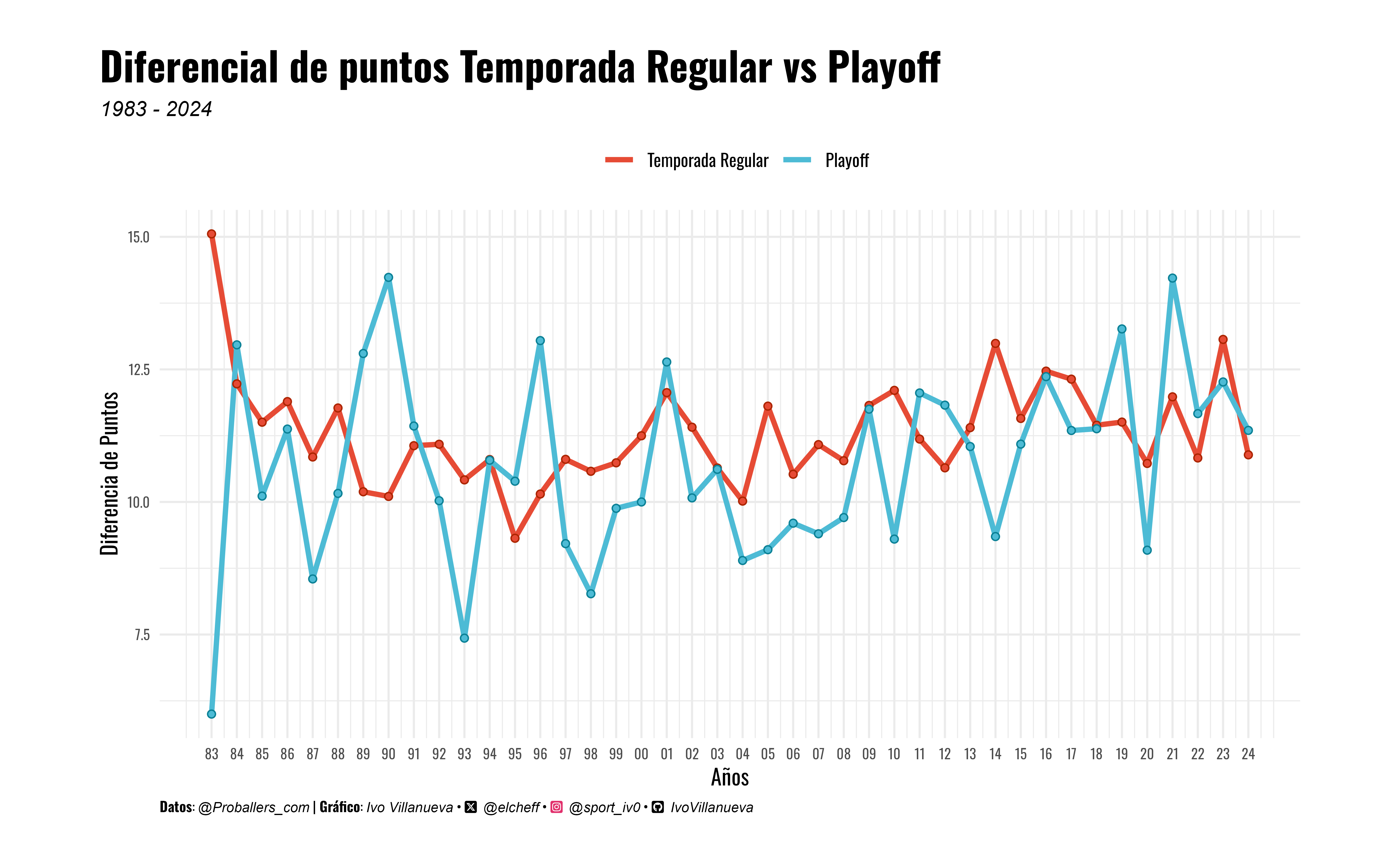 title = "Diferencial de puntos Temporada Regular vs Playoff",