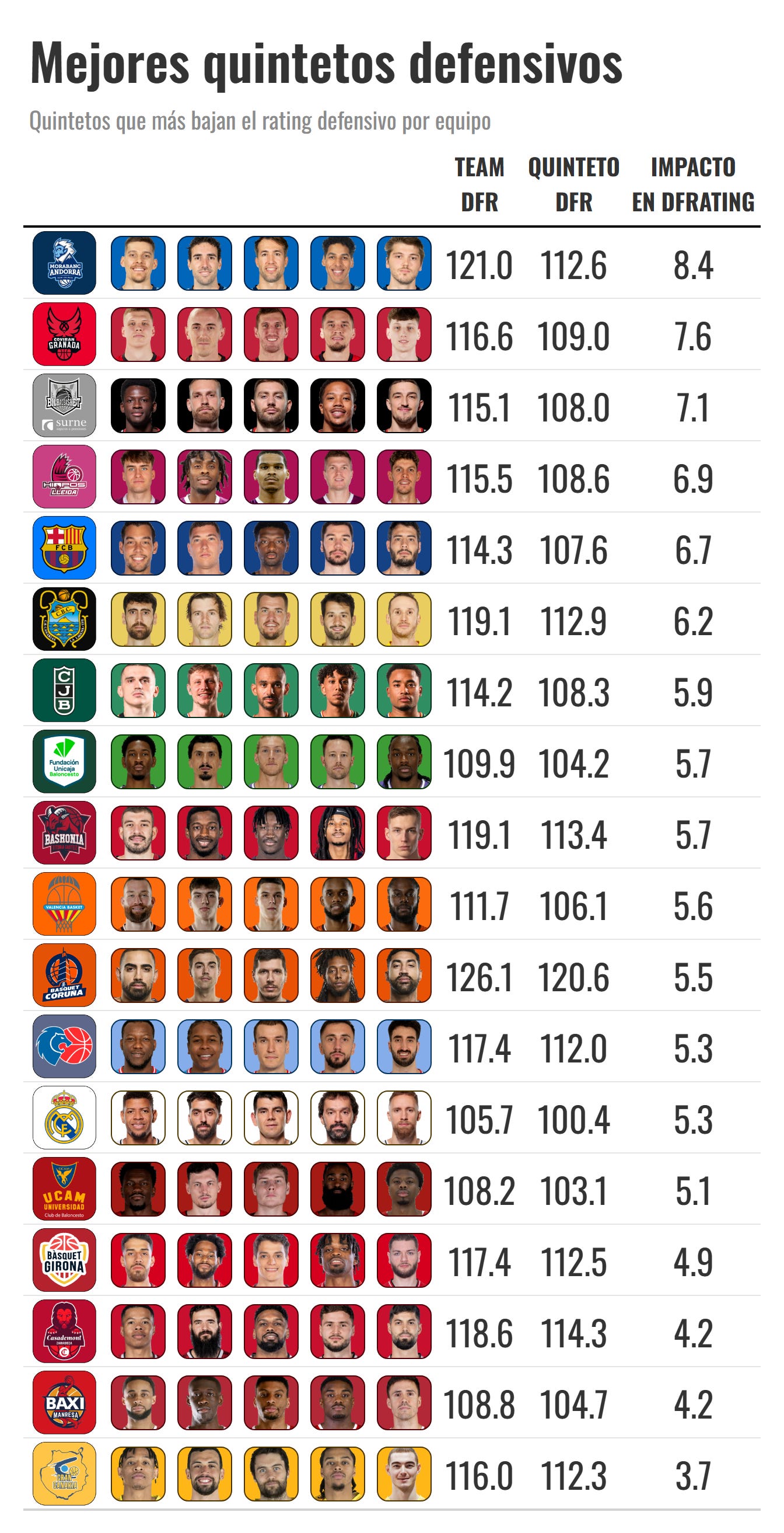 ¿y si miro qué cinco jugadores por equipo son los que, de verdad, marcan la diferencia en defensa?