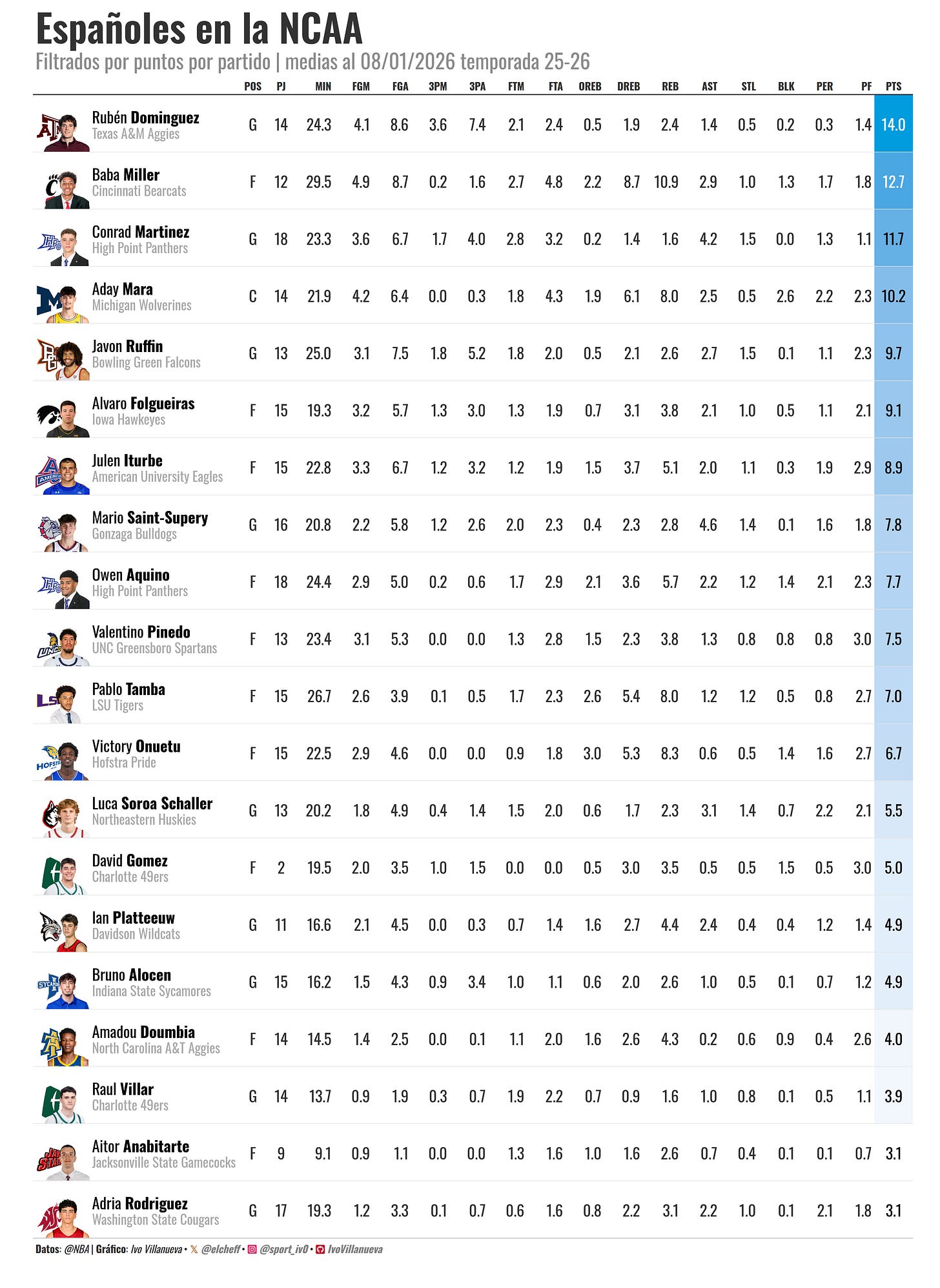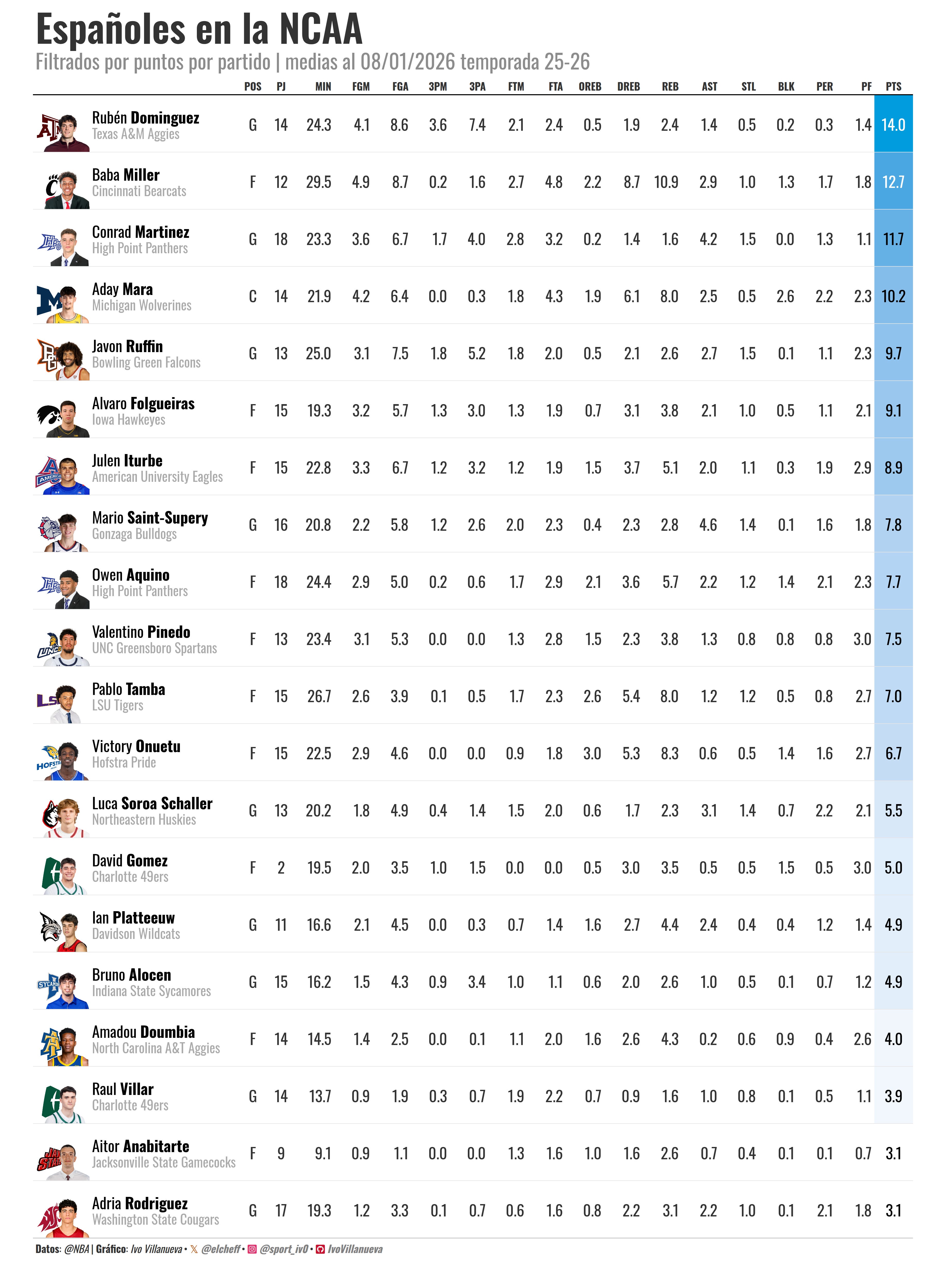 Los Españoles mas destacados en la NCAA